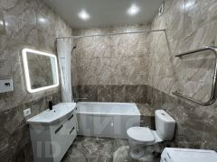 • Современные решения: Установлены натяжные потолки и точечное освещение. Санузел полностью отделан керамогранитом.