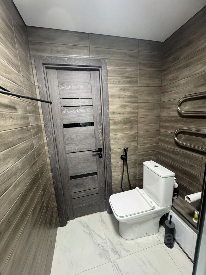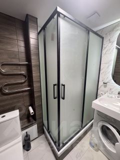 Санузел совмещен, на стенах и полу керамогранит, в душевой кабине тропический душ, рядом с унитазом смонтирован гигиенический душ.