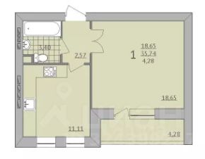 Площадь: общая 35,7 кв.м.(без учета лоджии), жилая-18,62кв.м., кухня -11,11 кв.м.