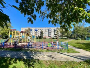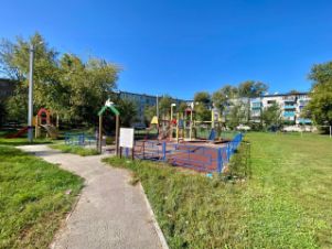 Тихий зелёный двор окружает дом со всех сторон. С одной стороны новая детская площадка, с другой детский сад 52 (филиал 3).