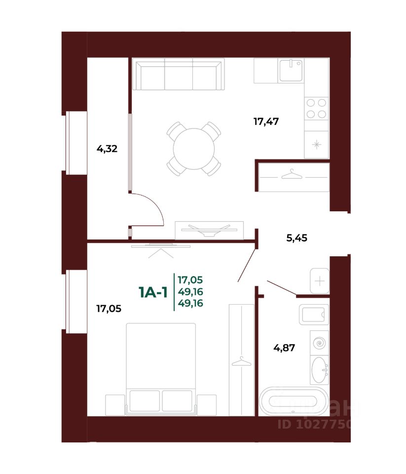 Общая площадь49,37 м²