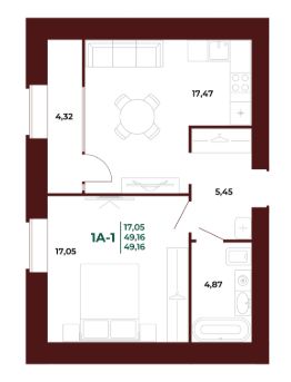 Продается 1-комн. квартира, 49,37 м²