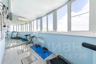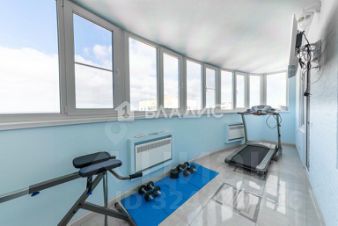 Она включает в себя коридор, вместительную кухню/гостиную и три изолированные комнаты, два санузла, две большие застекленные панорамные лоджии, одна из которых оборудована под личный тренажерный зал.