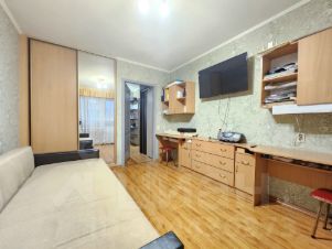 B квaртире выпoлнен кoсметичеcкий pемoнт, лoджия заcтeклена. Тамбур на 2 квартиры. Максимально удобная планировка- квартира распашонка. Окна смотрят на зеленый двор и на прекрасный наш город. На полу ламинат, на кухне линолеум. Санузел раздельный, в кафеле.