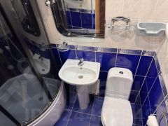 - Совмещённый санузел в кафеле, тёплый пол — комфорт круглый год.