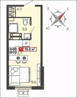 Продается 1-комн. квартира-студия с предчистовой отделкой в ЖК "Радужные дворы" на 3 этаже. Общая площадь: 19.8 кв.м., площадь гостиной 12.3 кв.м., из которых 2.7 кв.м. выделено под кухонную зону. Все окна выходят на одну сторону. В квартире один совмещенный санузел. Высота потолков 2.68 м.