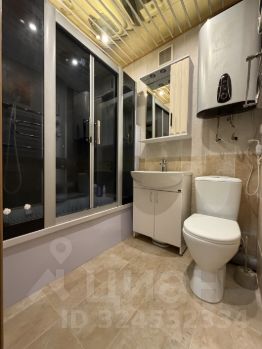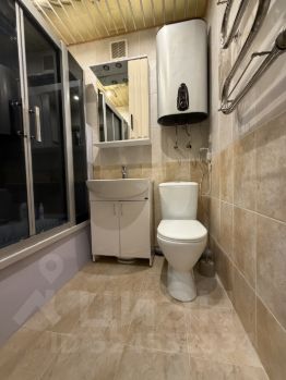 Санузел совмещен, в современном кафеле. Хорошая сантехника, душевая кабина.