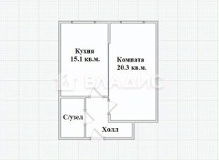 Планировка включает в себя холл, кухню-гостиную, просторную комнату, сан/узел.