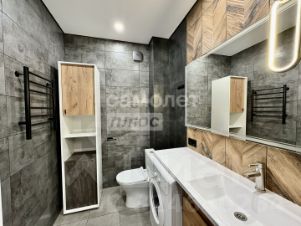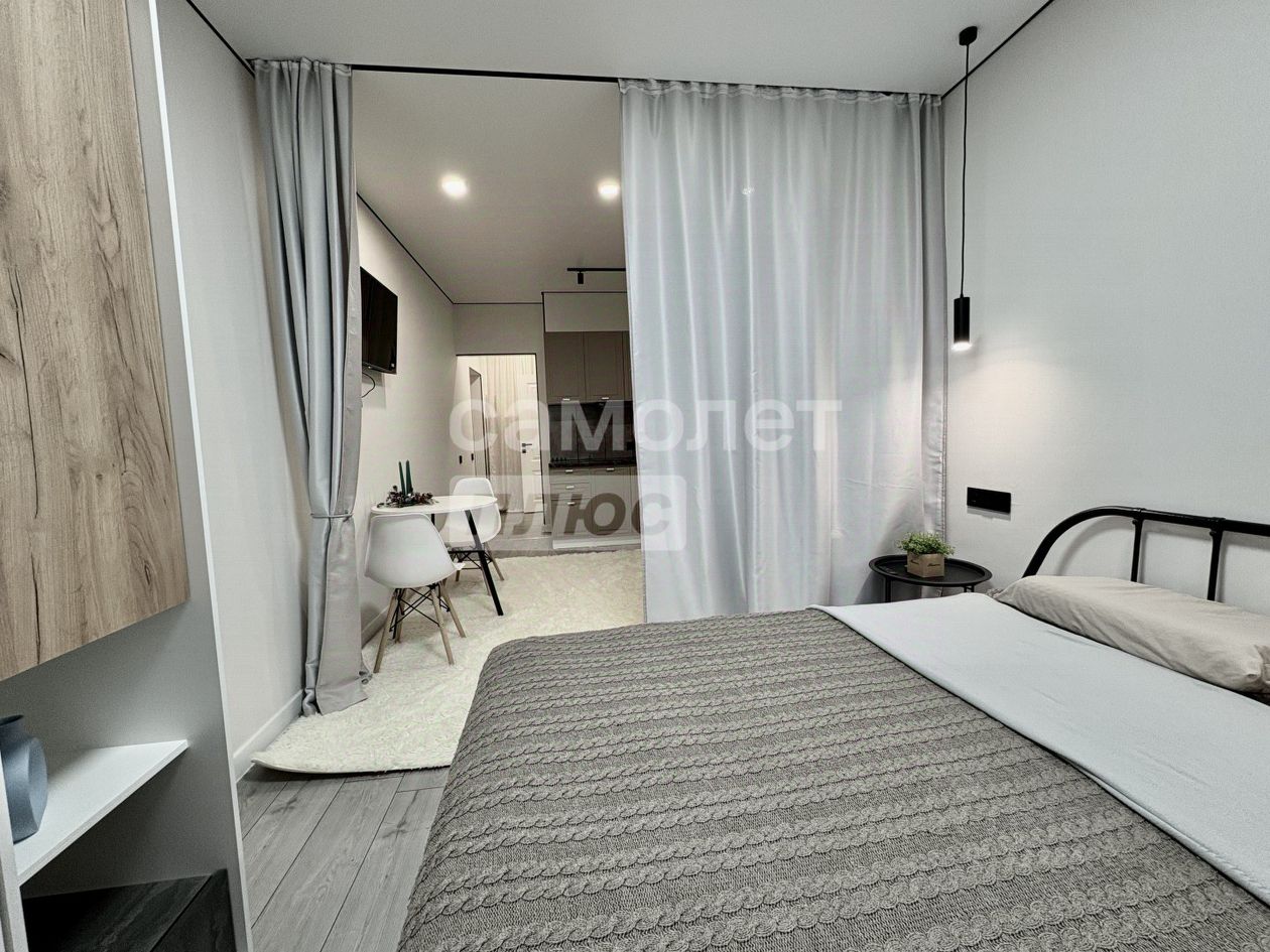 ОСТАЁТСЯ: Стильный кухонный гарнитур, холодильник, стиральная машинка, телевизор на поворотном кронштейне (смотрите с кровати или дивана), индукционная плита, вытяжка, микроволновая печь, кровать с ортопедическим матрасом, прикроватные столики, диван, стол, стулья, пуф в прихожей, шкаф для одежды, комод, шторы, модули для хранения вещей, гардеробная и т.д.