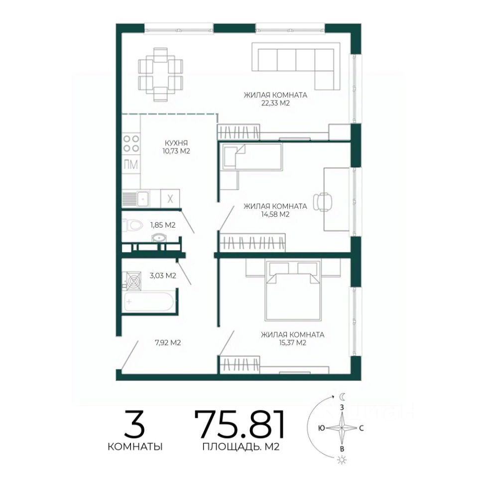 Продаётся 3-комнатная квартира в строящемся доме (2 этап (1 строение)), срок сдачи: III-кв. 2027, общей площадью 75.81 кв.м., на 6 этаже. Новый жилой комплекс "Чаадаев" от застройщика "Территория Жизни" расположен по адресу Россия, Пенза, улица Чаадаева, 60Б/2.