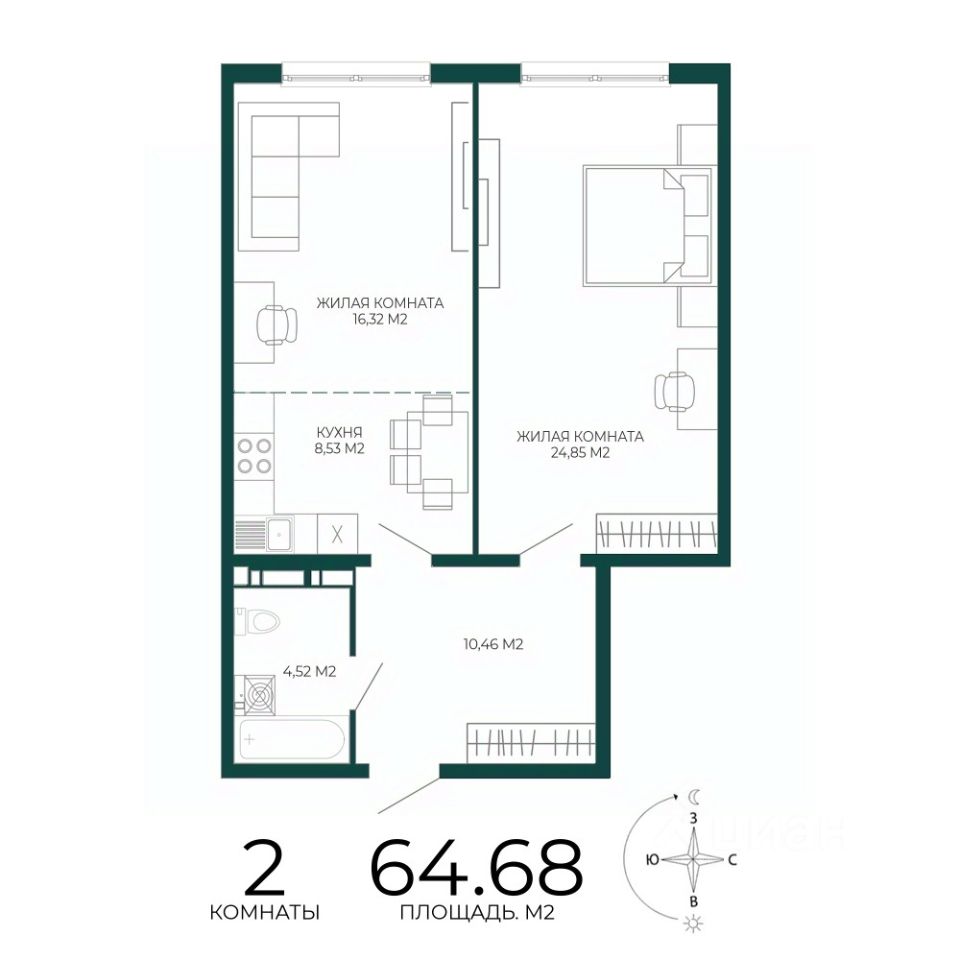 Продаётся 2-комнатная квартира в строящемся доме (2 этап (1 строение)), срок сдачи: III-кв. 2027, общей площадью 64.68 кв.м., на 9 этаже. Новый жилой комплекс "Чаадаев" от застройщика "Территория Жизни" расположен по адресу Россия, Пенза, улица Чаадаева, 60Б/2.