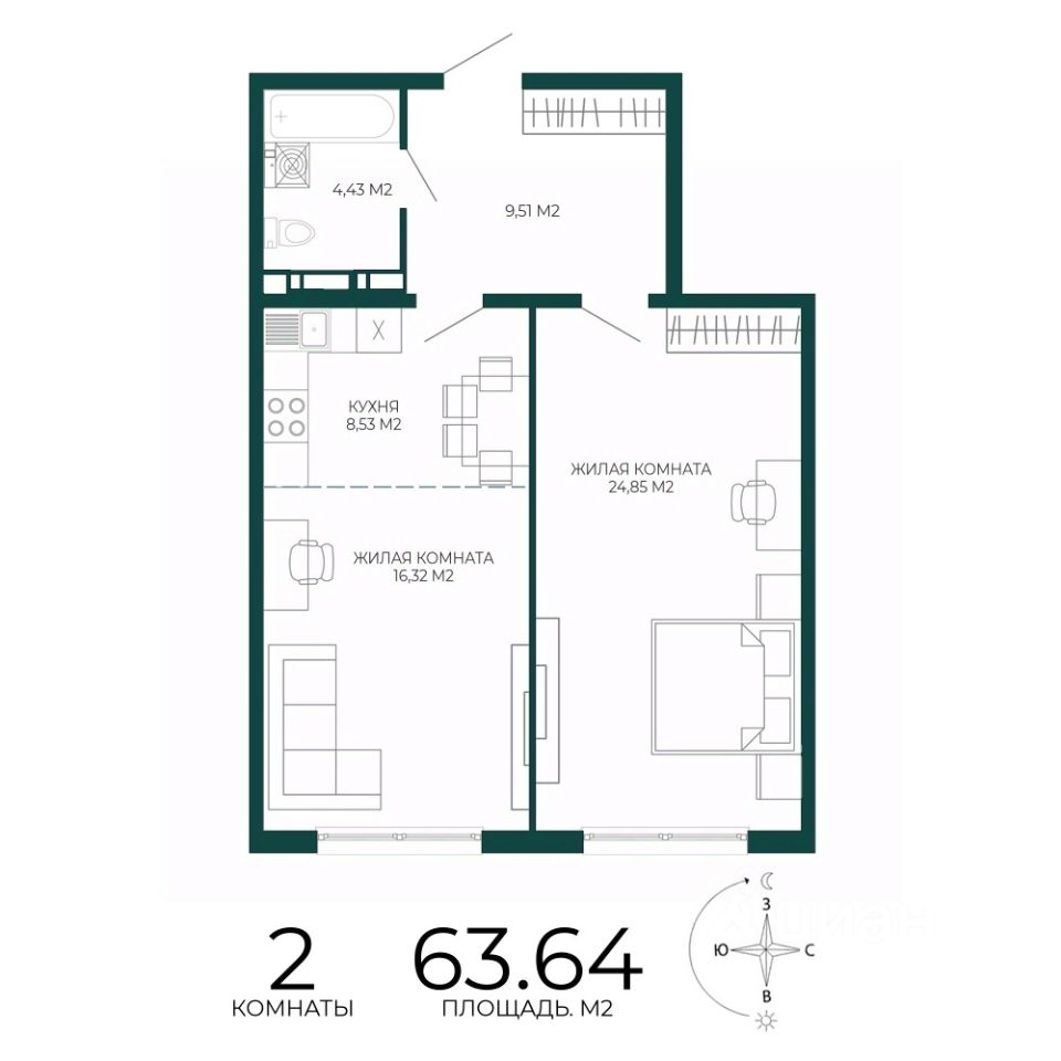 Продаётся 2-комнатная квартира в строящемся доме (2 этап (1 строение)), срок сдачи: III-кв. 2027, общей площадью 63.64 кв.м., на 12 этаже. Новый жилой комплекс "Чаадаев" от застройщика "Территория Жизни" расположен по адресу Россия, Пенза, улица Чаадаева, 60Б/2.