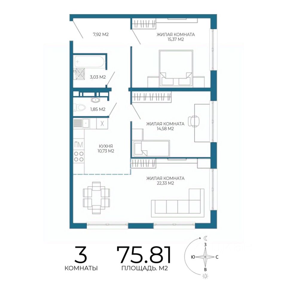 Продаётся 3-комнатная квартира в строящемся доме (1 этап ( 1 строение)), срок сдачи: III-кв. 2027, общей площадью 75.81 кв.м., на 10 этаже. Новый жилой комплекс "Чаадаев" от застройщика "Территория Жизни" расположен по адресу Россия, Пенза, улица Чаадаева, 60Б/2.