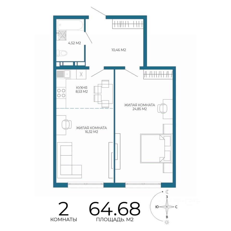 Продаётся 2-комнатная квартира в строящемся доме (1 этап ( 1 строение)), срок сдачи: III-кв. 2027, общей площадью 64.68 кв.м., на 16 этаже. Новый жилой комплекс "Чаадаев" от застройщика "Территория Жизни" расположен по адресу Россия, Пенза, улица Чаадаева, 60Б/2.