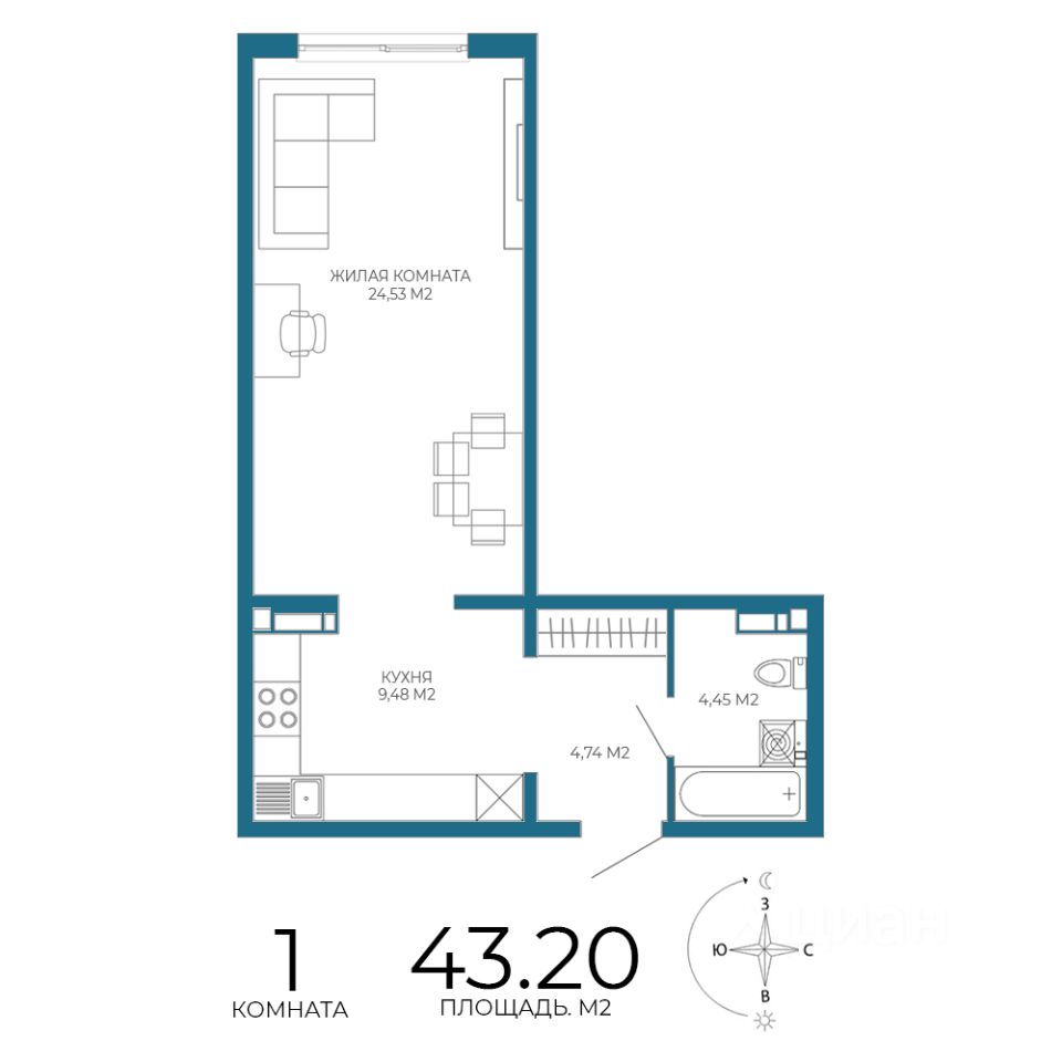Продаётся 1-комнатная квартира в строящемся доме (1 этап (2 строение)), срок сдачи: II-кв. 2028, общей площадью 43.2 кв.м., на 8 этаже. Новый жилой комплекс "Чаадаев" от застройщика "Территория Жизни" расположен по адресу Россия, Пенза, улица Чаадаева, 60Б/2.