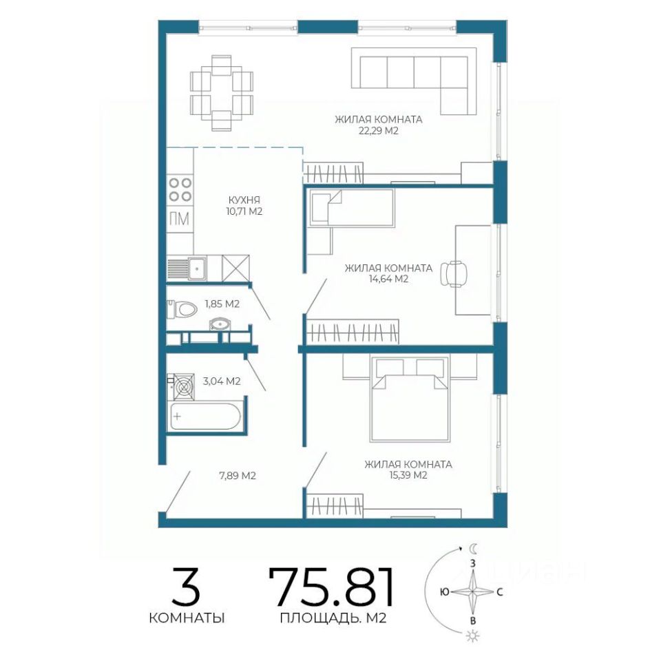 Продаётся 3-комнатная квартира в строящемся доме (1 этап (2 строение)), срок сдачи: II-кв. 2028, общей площадью 75.81 кв.м., на 8 этаже. Новый жилой комплекс "Чаадаев" от застройщика "Территория Жизни" расположен по адресу Россия, Пенза, улица Чаадаева, 60Б/2.
