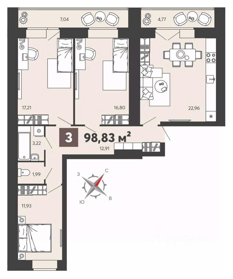 Продаётся 3-комнатная квартира в строящемся доме (корпус 4), срок сдачи: IV-кв. 2025, общей площадью 99 кв.м., на 3 этаже. Жилой комплекс возводится недалеко от центра Пензы, в районе улицы 8-е Марта.
