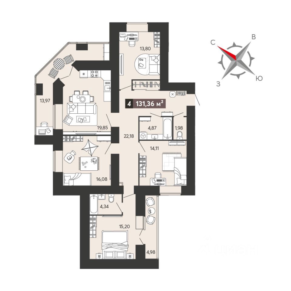 Продаётся 4-комнатная квартира в строящемся доме (корпус 5), срок сдачи: III-кв. 2026, общей площадью 131 кв.м., на 3 этаже. Жилой комплекс возводится недалеко от центра Пензы, в районе улицы 8-е Марта.
