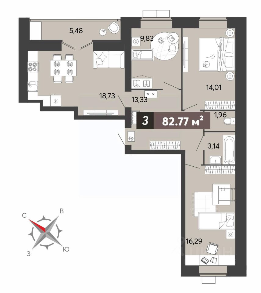Продаётся 3-комнатная квартира в строящемся доме (корпус 2), срок сдачи: III-кв. 2028, общей площадью 83 кв.м., на 14 этаже. Жилой комплекс возводится недалеко от центра Пензы, в районе улицы 8-е Марта.