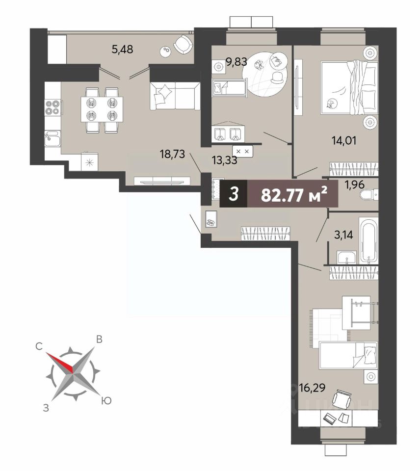 Продаётся 3-комнатная квартира в строящемся доме (корпус 2), срок сдачи: III-кв. 2028, общей площадью 83 кв.м., на 16 этаже. Жилой комплекс возводится недалеко от центра Пензы, в районе улицы 8-е Марта.