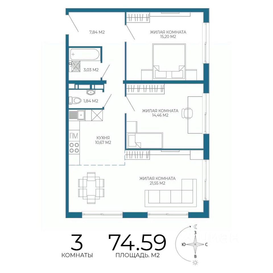 Продаётся 3-комнатная квартира в строящемся доме (1 этап (2 строение)), срок сдачи: II-кв. 2028, общей площадью 74.59 кв.м., на 2 этаже. Новый жилой комплекс "Чаадаев" от застройщика "Территория Жизни" расположен по адресу Россия, Пенза, улица Чаадаева, 60Б/2.