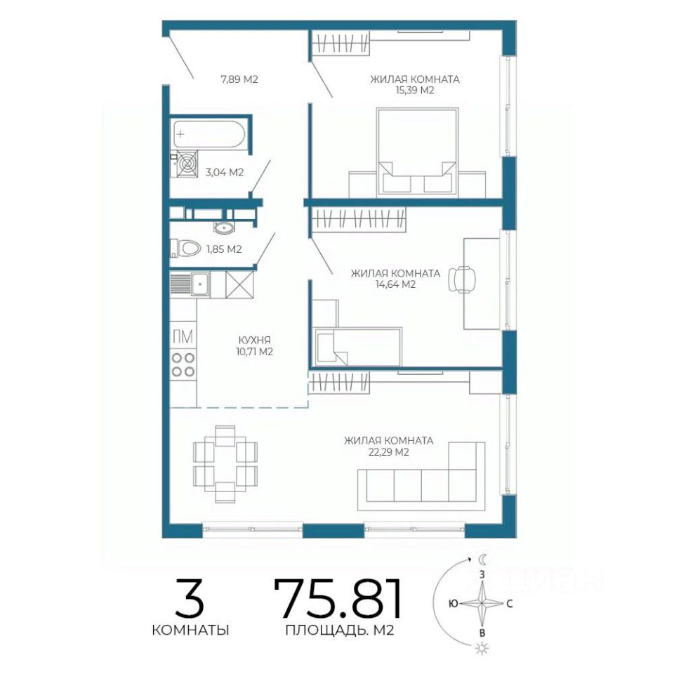 Продаётся 3-комнатная квартира в строящемся доме (1 этап (2 строение)), срок сдачи: II-кв. 2028, общей площадью 75.81 кв.м., на 9 этаже. Новый жилой комплекс "Чаадаев" от застройщика "Территория Жизни" расположен по адресу Россия, Пенза, улица Чаадаева, 60Б/2.