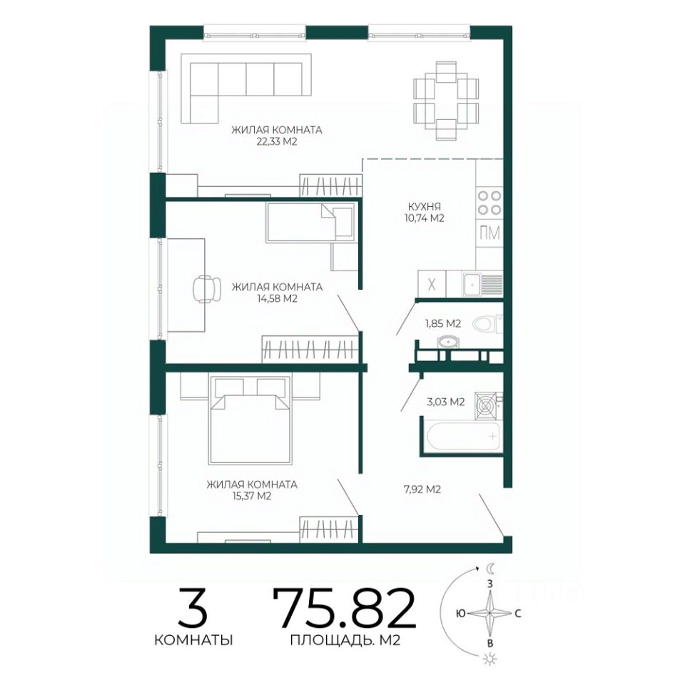 Продаётся 3-комнатная квартира в строящемся доме (2 этап (1 строение)), срок сдачи: III-кв. 2027, общей площадью 75.82 кв.м., на 6 этаже. Новый жилой комплекс "Чаадаев" от застройщика "Территория Жизни" расположен по адресу Россия, Пенза, улица Чаадаева, 60Б/2.