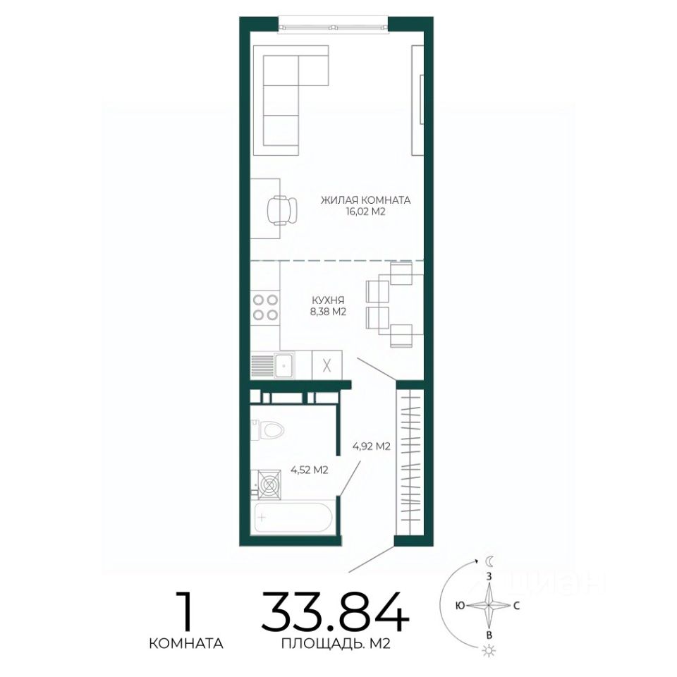 Продаётся 1-комнатная квартира в строящемся доме (2 этап (1 строение)), срок сдачи: III-кв. 2027, общей площадью 33.84 кв.м., на 7 этаже. Новый жилой комплекс "Чаадаев" от застройщика "Территория Жизни" расположен по адресу Россия, Пенза, улица Чаадаева, 60Б/2.