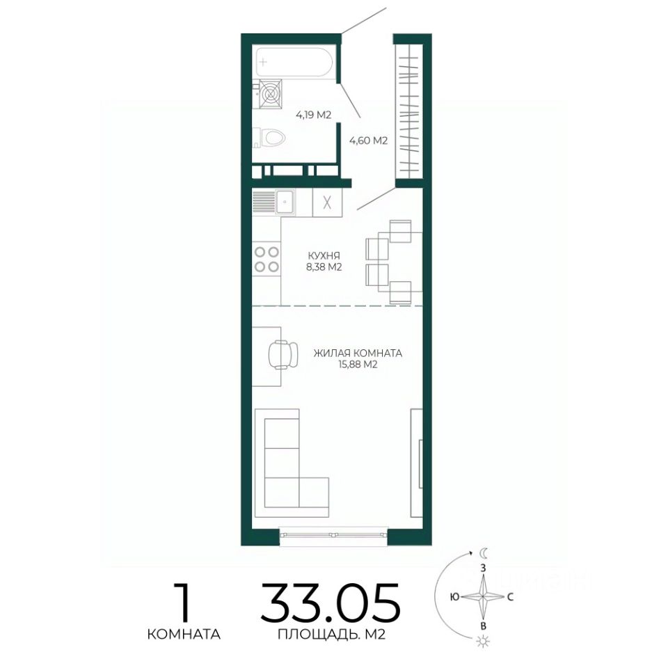 Продаётся 1-комнатная квартира в строящемся доме (2 этап (1 строение)), срок сдачи: III-кв. 2027, общей площадью 33.05 кв.м., на 3 этаже. Новый жилой комплекс "Чаадаев" от застройщика "Территория Жизни" расположен по адресу Россия, Пенза, улица Чаадаева, 60Б/2.