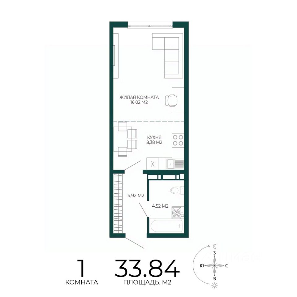 Продаётся 1-комнатная квартира в строящемся доме (2 этап (1 строение)), срок сдачи: III-кв. 2027, общей площадью 33.84 кв.м., на 16 этаже. Новый жилой комплекс "Чаадаев" от застройщика "Территория Жизни" расположен по адресу Россия, Пенза, улица Чаадаева, 60Б/2.
