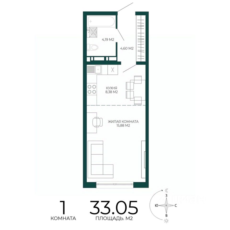 Продаётся 1-комнатная квартира в строящемся доме (2 этап (1 строение)), срок сдачи: III-кв. 2027, общей площадью 33.05 кв.м., на 4 этаже. Новый жилой комплекс "Чаадаев" от застройщика "Территория Жизни" расположен по адресу Россия, Пенза, улица Чаадаева, 60Б/2.