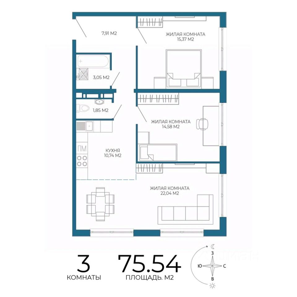 Продаётся 3-комнатная квартира в строящемся доме (1 этап ( 1 строение)), срок сдачи: III-кв. 2027, общей площадью 75.54 кв.м., на 3 этаже. Новый жилой комплекс "Чаадаев" от застройщика "Территория Жизни" расположен по адресу Россия, Пенза, улица Чаадаева, 60Б/2.