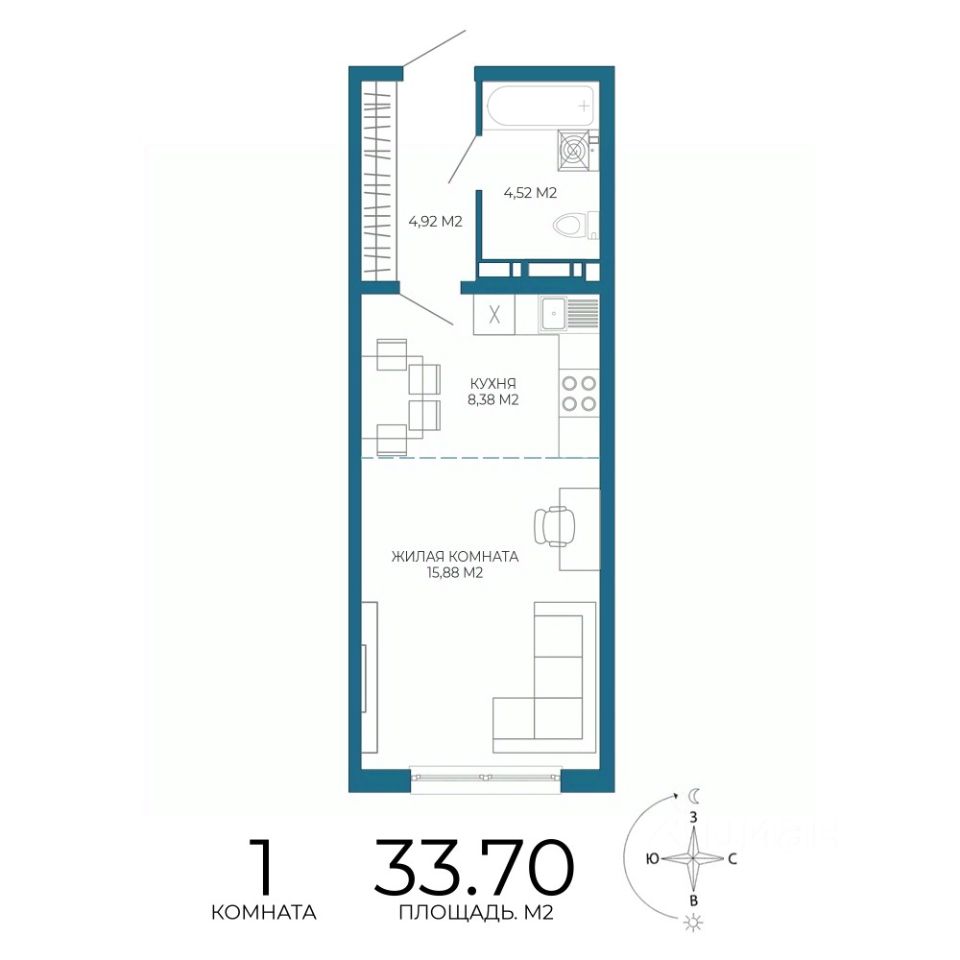 Продаётся 1-комнатная квартира в строящемся доме (1 этап ( 1 строение)), срок сдачи: III-кв. 2027, общей площадью 33.7 кв.м., на 3 этаже. Новый жилой комплекс "Чаадаев" от застройщика "Территория Жизни" расположен по адресу Россия, Пенза, улица Чаадаева, 60Б/2.