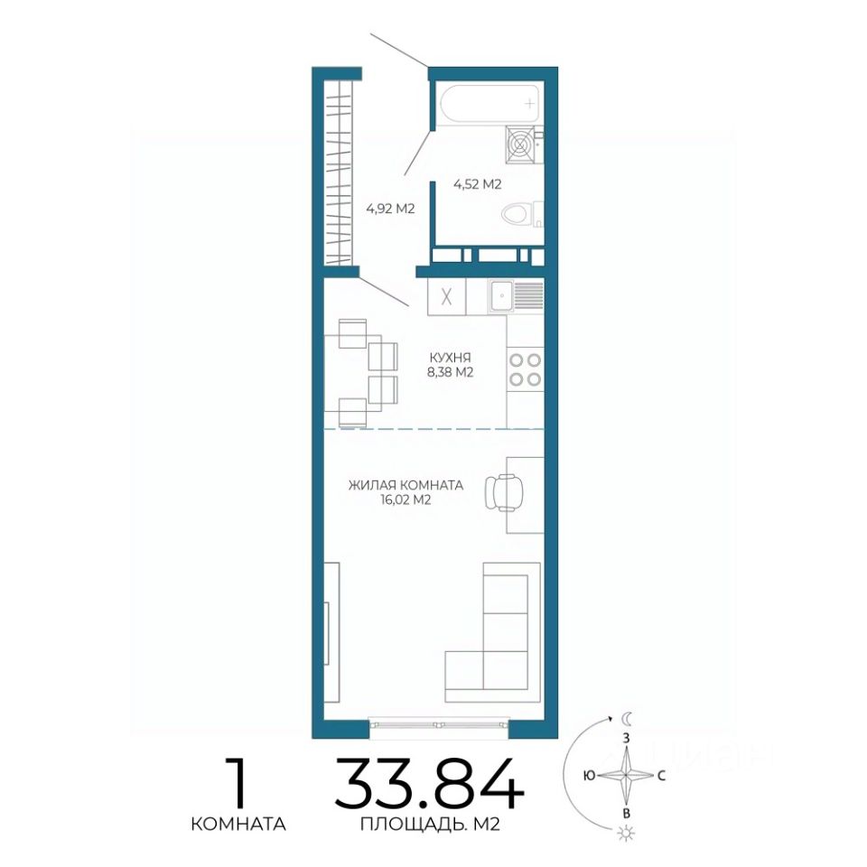 Продаётся 1-комнатная квартира в строящемся доме (1 этап ( 1 строение)), срок сдачи: III-кв. 2027, общей площадью 33.84 кв.м., на 9 этаже. Новый жилой комплекс "Чаадаев" от застройщика "Территория Жизни" расположен по адресу Россия, Пенза, улица Чаадаева, 60Б/2.