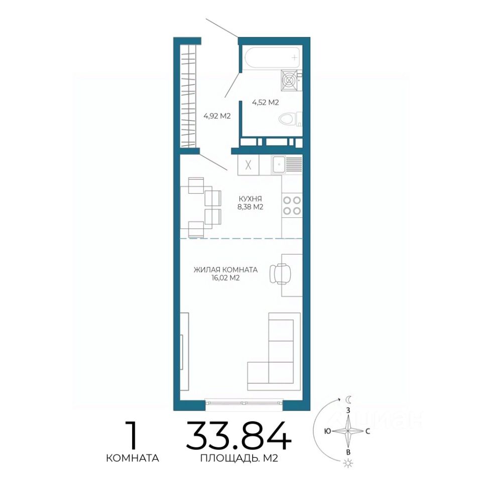 Продаётся 1-комнатная квартира в строящемся доме (1 этап ( 1 строение)), срок сдачи: III-кв. 2027, общей площадью 33.84 кв.м., на 12 этаже. Новый жилой комплекс "Чаадаев" от застройщика "Территория Жизни" расположен по адресу Россия, Пенза, улица Чаадаева, 60Б/2.