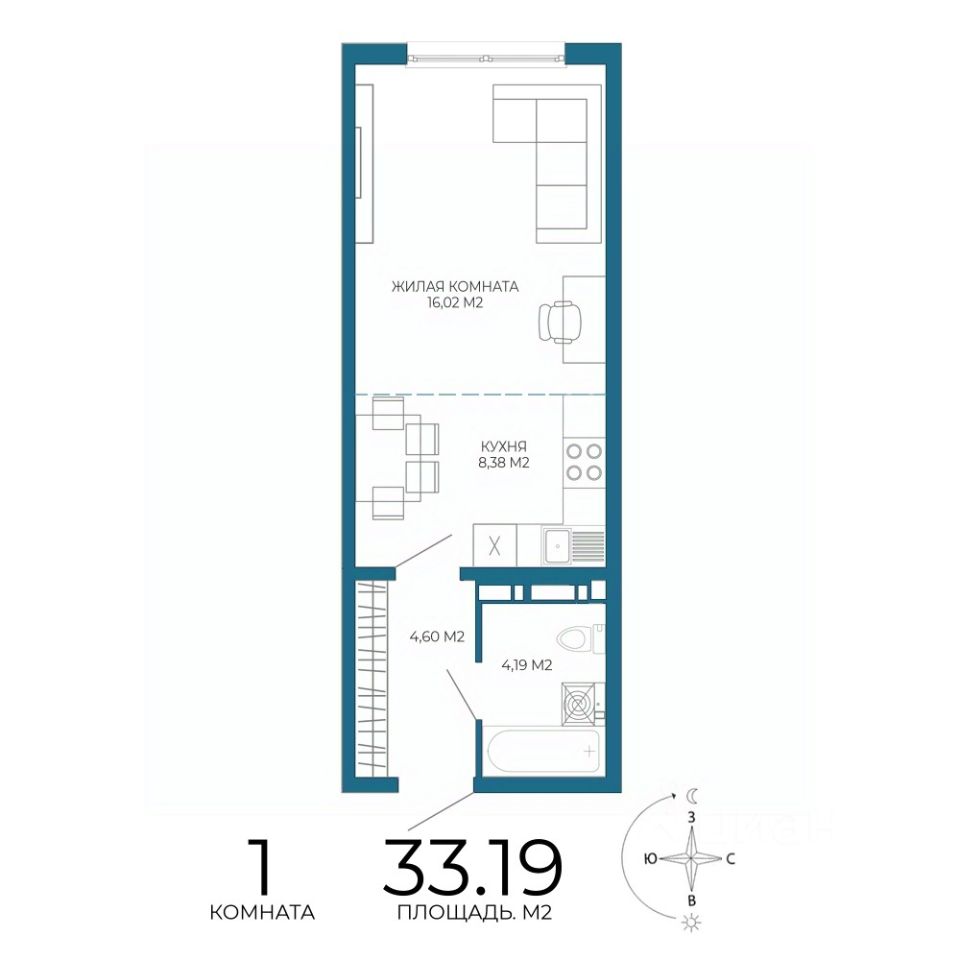 Общая площадь33,19 м²