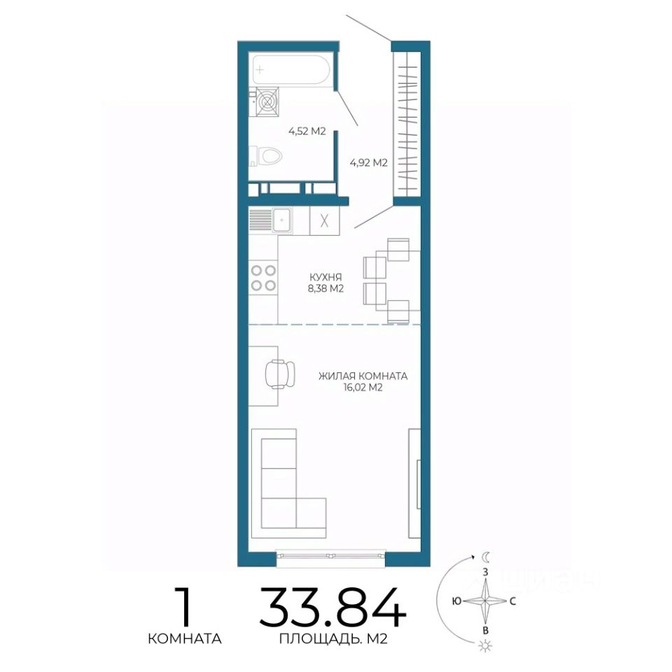 Продаётся 1-комнатная квартира в строящемся доме (1 этап ( 1 строение)), срок сдачи: III-кв. 2027, общей площадью 33.84 кв.м., на 15 этаже. Новый жилой комплекс "Чаадаев" от застройщика "Территория Жизни" расположен по адресу Россия, Пенза, улица Чаадаева, 60Б/2.