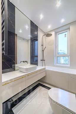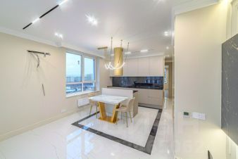 В квартире сделан качественный дизайнерский ремонт, делали для жизни, а не на перепродажу: все стены идеально выровнены и окрашены, на полу ламинат и керамогранит, смонтирована система теплого пола, санузлы в современном кафеле; натяжные потолки с трековым и точечным освещением, межкомнатные двери скрытого монтажа.