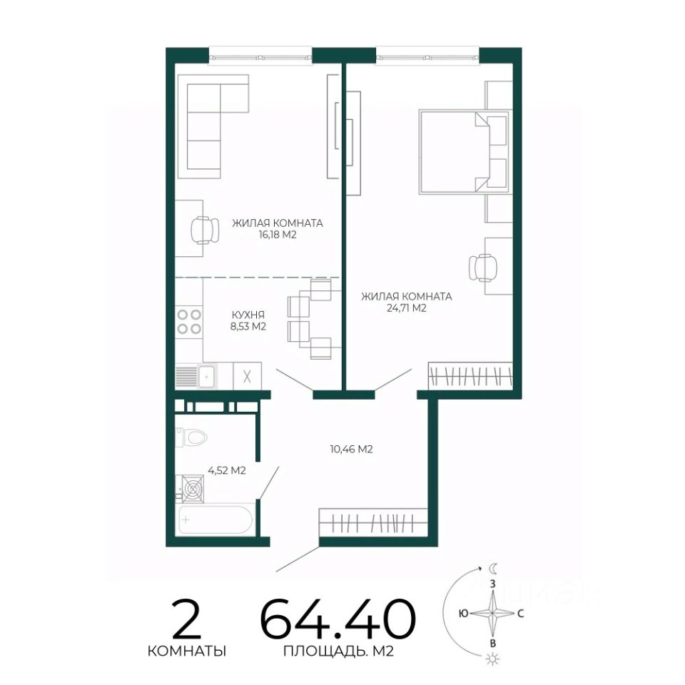 Продаётся 2-комнатная квартира в строящемся доме (2 этап (1 строение)), срок сдачи: III-кв. 2027, общей площадью 64.4 кв.м., на 3 этаже. Новый жилой комплекс "Чаадаев" от застройщика "Территория Жизни" расположен по адресу Россия, Пенза, улица Чаадаева, 60Б/2.