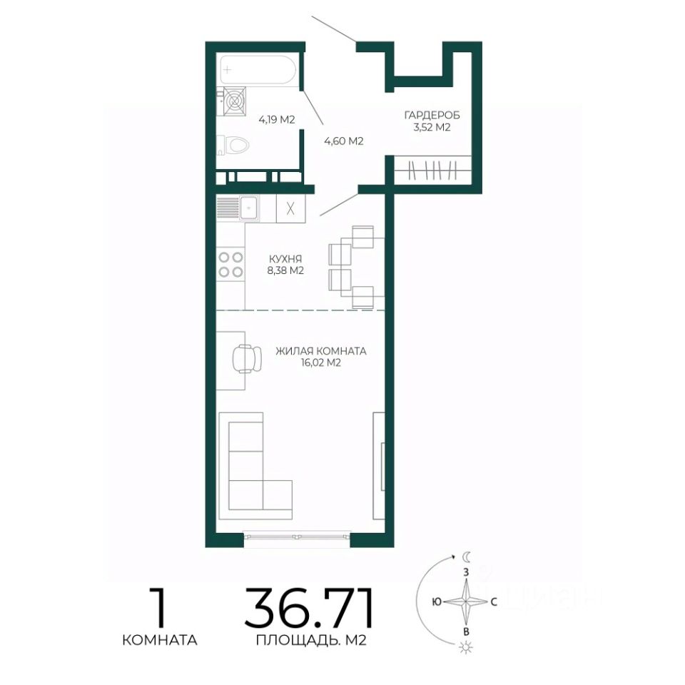 Продаётся 1-комнатная квартира в строящемся доме (2 этап (1 строение)), срок сдачи: III-кв. 2027, общей площадью 36.71 кв.м., на 17 этаже. Новый жилой комплекс "Чаадаев" от застройщика "Территория Жизни" расположен по адресу Россия, Пенза, улица Чаадаева, 60Б/2.