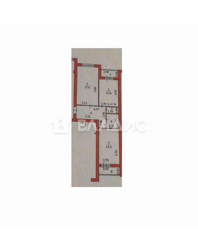 Две комнаты изолированные — 13,3 и 17,6 кв. м.