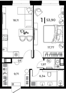 Продаётся 1-комнатная квартира в строящемся доме (Корпус 1), срок сдачи: IV-кв. 2026, общей площадью 53.9 кв.м., на 3 этаже. Новый жилой комплекс "Клубный дом my MAISON" от застройщика "Dewell group" расположен по адресу Россия, Пензенская область, Заречный, Братская улица, 8.