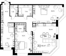 Продаётся 3-комнатная квартира в строящемся доме (Корпус 1), срок сдачи: IV-кв. 2026, общей площадью 133.47 кв.м., на 5 этаже. Новый жилой комплекс "Клубный дом my MAISON" от застройщика "Dewell group" расположен по адресу Россия, Пензенская область, Заречный, Братская улица, 8.