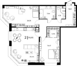 Продаётся 2-комнатная квартира в строящемся доме (Корпус 1), срок сдачи: IV-кв. 2026, общей площадью 115.93 кв.м., на 5 этаже. Новый жилой комплекс "Клубный дом my MAISON" от застройщика "Dewell group" расположен по адресу Россия, Пензенская область, Заречный, Братская улица, 8.
