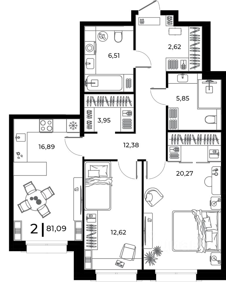 Продаётся 2-комнатная квартира в строящемся доме (Корпус 1), срок сдачи: IV-кв. 2026, общей площадью 81.09 кв.м., на 1 этаже. Новый жилой комплекс "Клубный дом my MAISON" от застройщика "Dewell group" расположен по адресу Россия, Пензенская область, Заречный, Братская улица, 8.