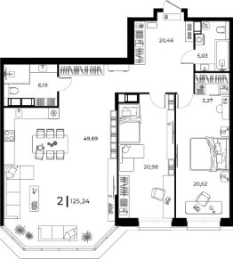 Продаётся 2-комнатная квартира в строящемся доме (Корпус 1), срок сдачи: IV-кв. 2026, общей площадью 125.24 кв.м., на 6 этаже. Новый жилой комплекс "Клубный дом my MAISON" от застройщика "Dewell group" расположен по адресу Россия, Пензенская область, Заречный, Братская улица, 8.
