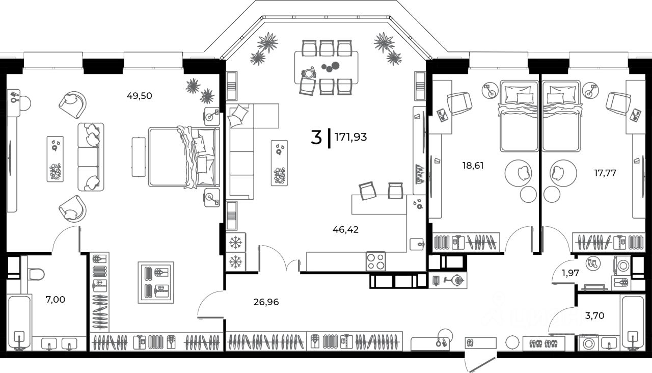 Продаётся 3-комнатная квартира в строящемся доме (Корпус 1), срок сдачи: IV-кв. 2026, общей площадью 171.93 кв.м., на 7 этаже. Новый жилой комплекс "Клубный дом my MAISON" от застройщика "Dewell group" расположен по адресу Россия, Пензенская область, Заречный, Братская улица, 8.