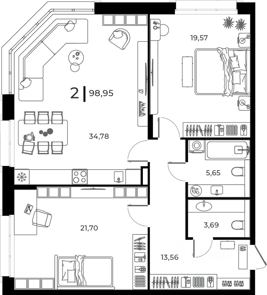 Продаётся 2-комнатная квартира в строящемся доме (Корпус 1), срок сдачи: IV-кв. 2026, общей площадью 98.95 кв.м., на 1 этаже. Новый жилой комплекс "Клубный дом my MAISON" от застройщика "Dewell group" расположен по адресу Россия, Пензенская область, Заречный, Братская улица, 8.