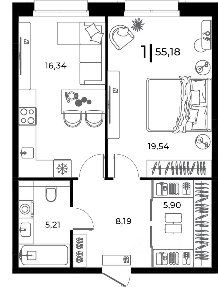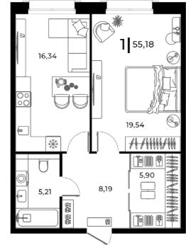 Продаётся 1-комнатная квартира в строящемся доме (Корпус 1), срок сдачи: IV-кв. 2026, общей площадью 55.18 кв.м., на 1 этаже. Новый жилой комплекс "Клубный дом my MAISON" от застройщика "Dewell group" расположен по адресу Россия, Пензенская область, Заречный, Братская улица, 8.
