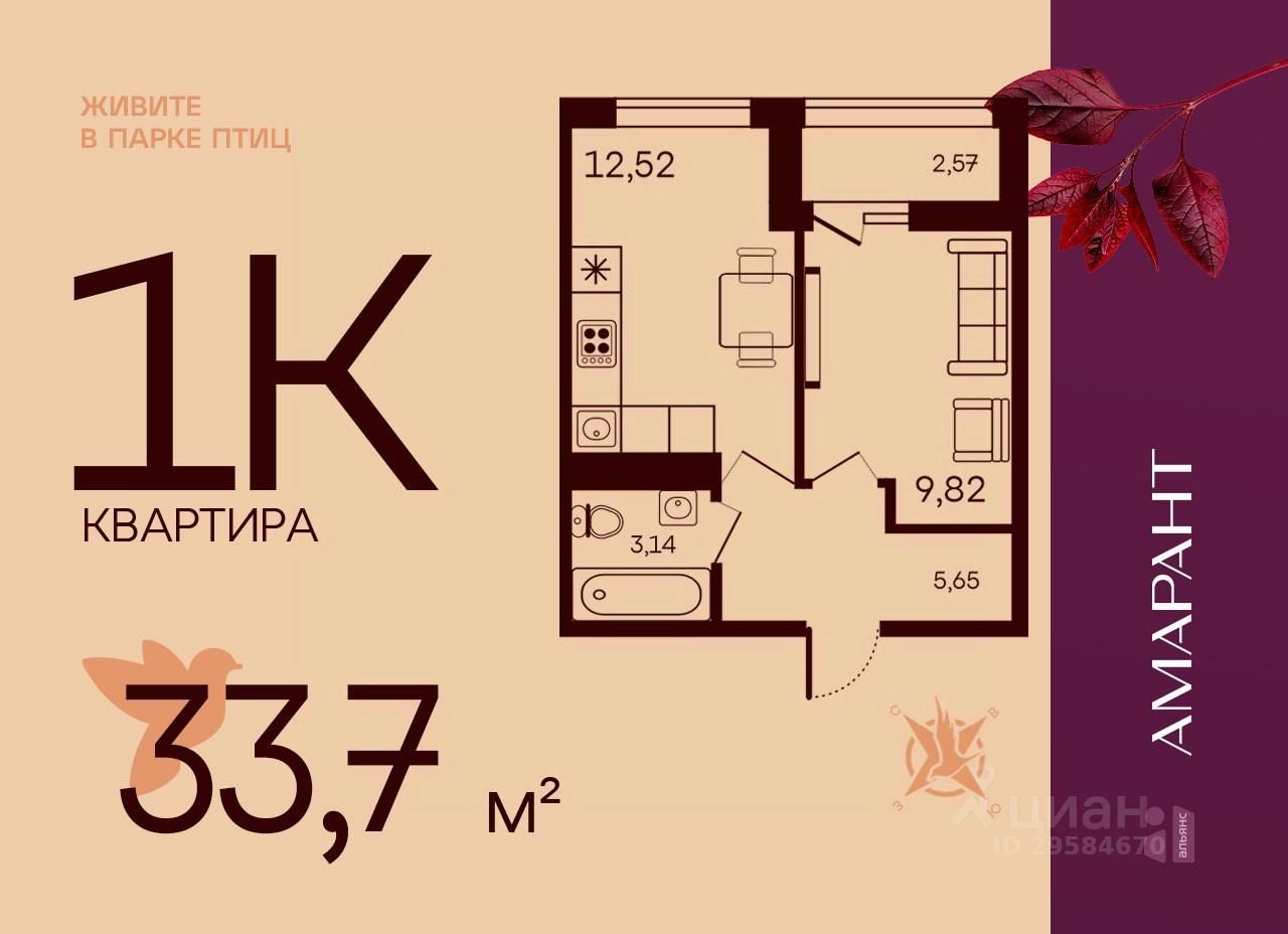 Общая площадь33,7 м²